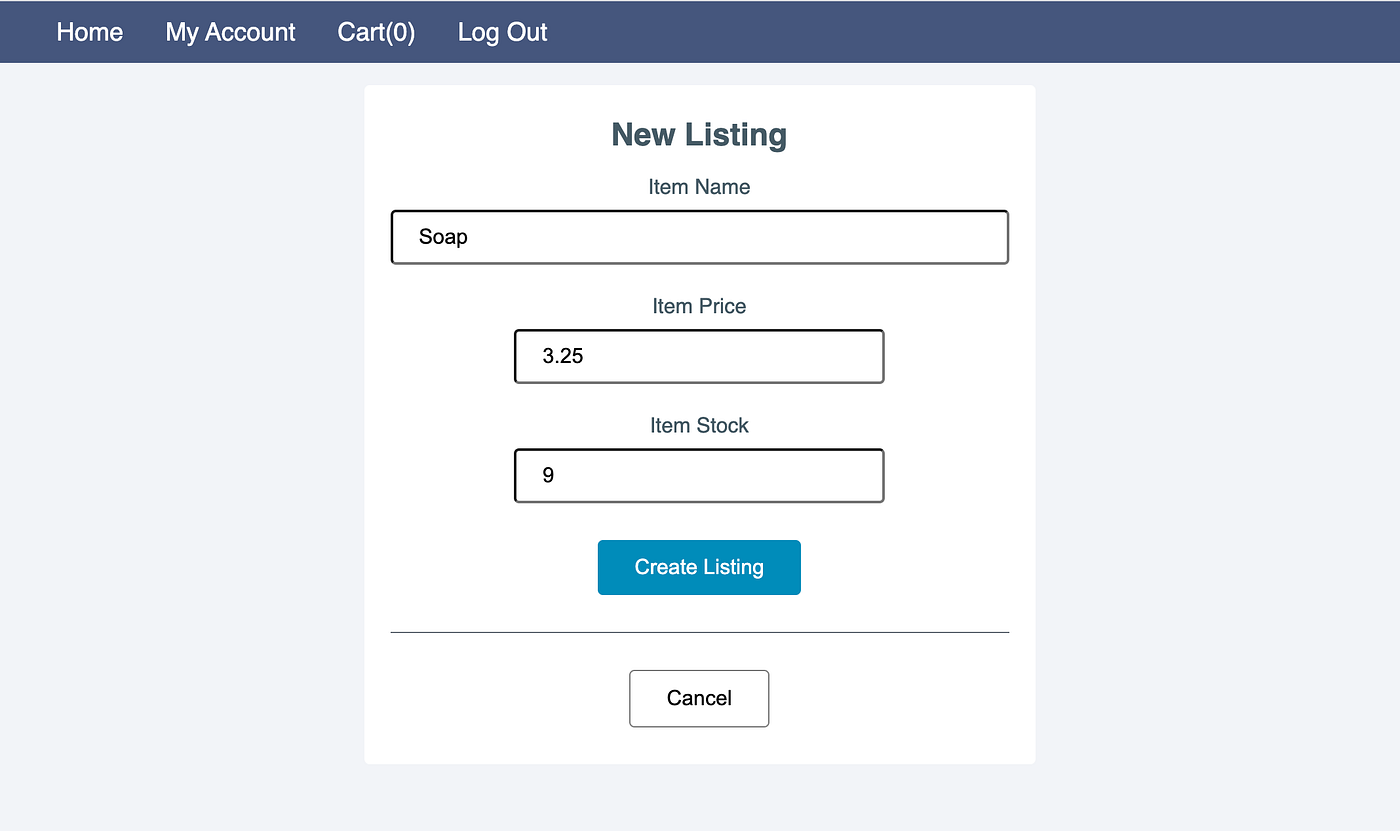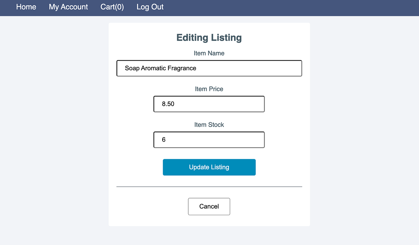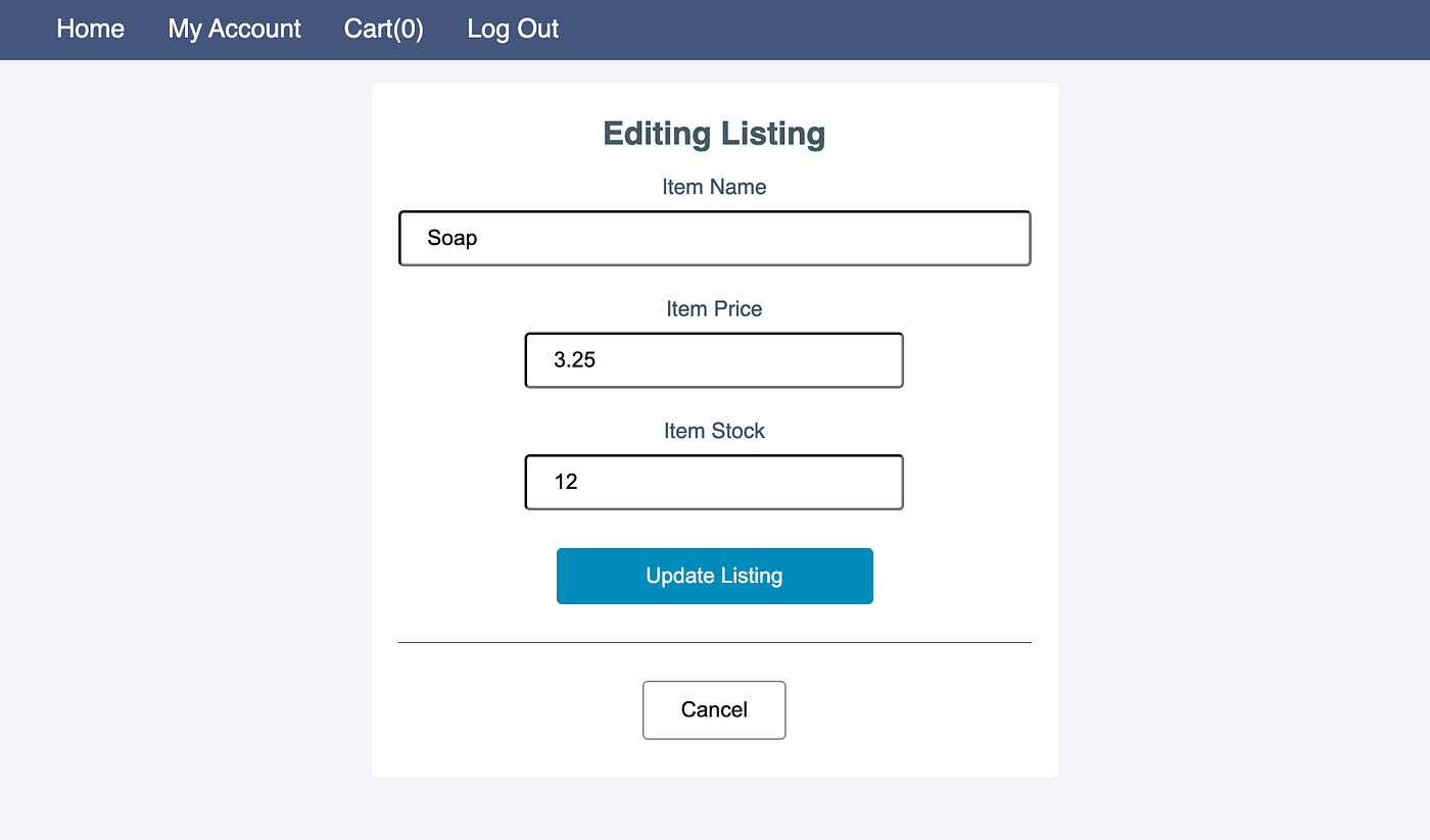 Now, what if we want to change (update) the stock for the soaps from 9 to 5? Similar procedure as above: count the number of soaps currently on the database for the user, then subtract the stock number submitted in the form from the current stock, that is, 9 –5 = 4. What does this mean? This means that we want to destroy 4 copies of the soap object so that the new stock is 5. To accomplish this, upon the user clicking on “Update Listing”, find all copies for the soap object for the user and destroy 4 of them.