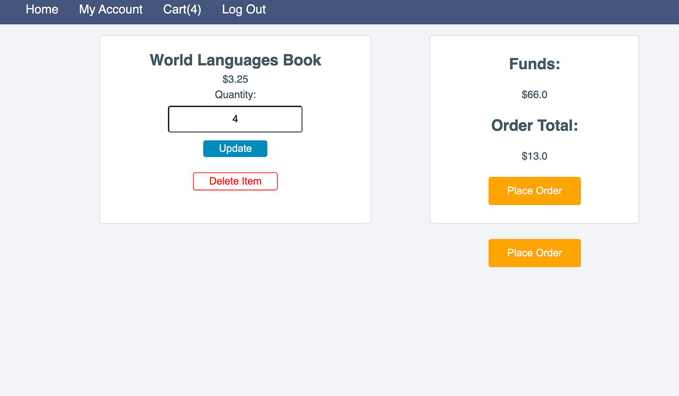 From the above figure, my cart has 4 “World Languages Book” objects, that is, cart.items yields an array of 4 item objects. Now suppose that I close the app in my desktop and go outside to do some things. While outside, the seller of this item (which is another user) updates the name of the item to “Social Studies Book”. Then I come back an hour later, open my desktop and go to my cart view. What am I going to see? I’m going to see “Social Studies Book”, and I’l be asking myself why the name of the item in my cart changed. That is, changing the database changes the cart’s content. That is not desirable. How do we solve this? I came up with the following solution: we need the cart to be in a FROZEN STATE, independent of the database. Instead of cart.items yielding an ActiveRecord Association array, we want cart.itemsto be a plain ruby array, without ActiveRecord, and this will give us a frozen state for the cart: once an item is pushed to the cart.items array, the array won’t change even if the pushed item is updated at a later time, and the user will see the same item from the last time the user viewed the cart.